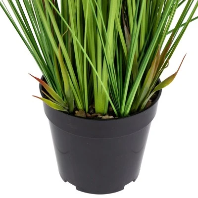 Welcome nature to your home with this artificial potted onion and pampas grass. This potted grass provides the perfect solution for those who want some lush greenery in their home without the hassle of maintenance. Whether you are using it to bring a touch of greenery to your home, office, study or patio this tree will be sure to impress. So why wait? Order your artificial plant today and bring that touch of nature to your space without any maintenance!Product Features:Potted artificial onion and pampas grassMixture of tall green grass and white fluffy seedheadsPerfect addition to any spaceNestled inside of black weighed pot filled with stonePlant in pot can be placed in larger, decorative potsFor indoor or covered outdoor useDimensions: 27″ high x 12″ diameter Material(s): plastic/wireNote:Plant comes in black pot, but can be placed in other, larger pots as shown in styled photo