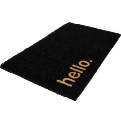 Make a warm and inviting statement to your home with this “hello” doormat. With its sturdy construction and non-slip backing, this doormat stays securely in place, even in high traffic areas.The thick and durable coir fibers are perfect for trapping in dirt and moisture from shoes. Whether it’s placed at the front door, back door, or patio entrance, this doormat is a functional and decorative addition to any home.Product Features:Doormat made with coir fibers”Hello” in natural stylish printConstructed for lasting durabilityNon-skid backing provides secure placementFor both indoor or outdoor useCare instructions: rinse with a hose and air dryDimensions: 18″H x 30″W x .75″DMaterial(s): coir/PVC
