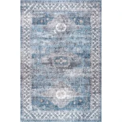 NuLOOM Eva Machine Washable Vintage Faded Medallion Area Rug