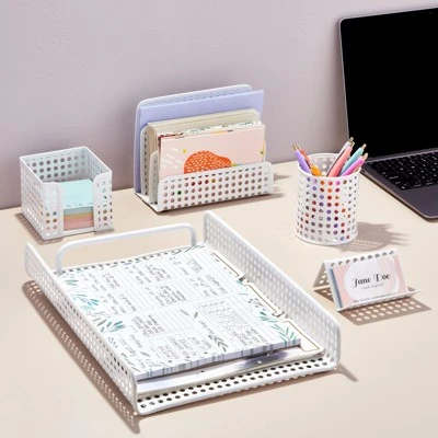 - Multi-Purpose: Use this set of white desk organizers and accessories to hold your pens, paper, business cards, envelopes, and sticky notes; perfect for your office, home, or workspace