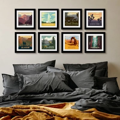 Bring inside your love of the great outdoors with these vintage-inspired National Parks travel posters. Reconnect with nature wherever you are by displaying these stunning styles created by local artists and nature lovers. Unique designs feature The Grand Canyon, Joshua Tree, Yosemite, Yellowstone, The Great Smoky Mountains, Zion, Rocky Mountain, and Arches National Parks. Hang these art pieces together to create a bold gallery wall or separate throughout your space for instant cohesion. Our design experts have hand selected this art set, ensuring maximum style and simplicity as you refresh your space for an outdoor, woodland feel.