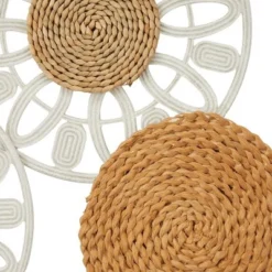 It makes a great centerpiece over your sofa or in your dining room. Create a balanced space in the most creative way with this expertly crafted wall décor for captivating focal point. Add some style to your wall with this corn husk wall decoration with a striking floral design that will provide a fine decoration worth to your place. This item ships in 1 carton. Can be hung vertically using the metal rings on the back; nails and screws not included. Suitable for indoor use only. This item ships fully assembled in one piece. This is a single brown colored wall sculptures. Bohemian style.