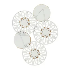 - Brown and white wall decor that highlights round structure with an abstract design and a solid pattern