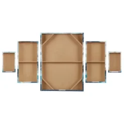 Give your home a beautiful modern touch with the Midnight Tide Blue Gel Coat Canvas 5 Piece Set by Artist Blakely Bering. Showcasing cool blues and earthy tones, this oversized five piece wall art set creates a gorgeous abstract image that can serve as the focal point in any room. The contrasting colors are protected by a gel coating that provides additional texture and a glossy finish, while also preventing fading over time. A cardboard backing on each canvas adds structure and support, while two D-rings on the reverse of each piece makes this set easy to hang. Comes as a 5 Piece set in varying sizes; Display this gel coat canvas set together for an oversized art piece sure to capture anyone’s attention, or hang pieces separately throughout your home to fit any smaller space. Spot clean only.
