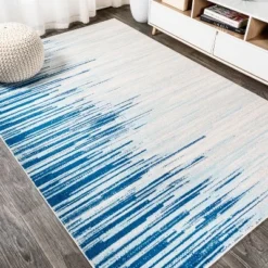 Mingled threads of navy, gray and ivory create a modern, linear blue and white design with a coastal look. This rug’s unique strie’ stripe pattern makes it perfect for homes with kids and pets. It’s the ideal centerpiece for a contemporary, coastal or even minimalist interior.