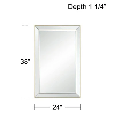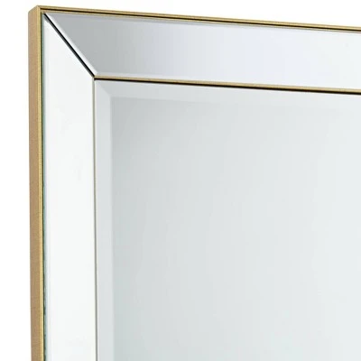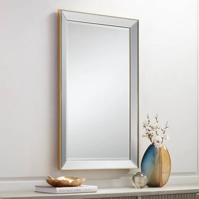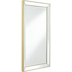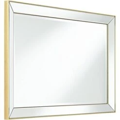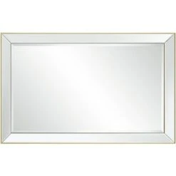 Mirrored trim and a slender, matte gold finish frame create a sophisticated look for this modern rectangular wall mirror. From Uttermost, the mirror is an elegant choice over a console or in your bedroom. Complete with beveled glass, this mirror can be hung vertically or horizontally and is designed exclusively for Lamps Plus.