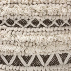 Add a cozy, bohemian touch to any space with the Vesey pouf. Handwoven from wool and cotton, the Vesey features a chic blend of beige and brown hues. A melange of fringe and braiding lends vibrant texture. This versatile piece can be used as a seat, footstool, or casual coffee table. Made in India.