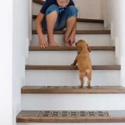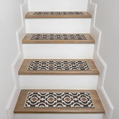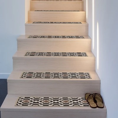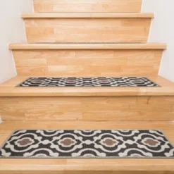 Liven up the stairs in your home with this 26-inch non-slip nylon stair treads. The architectural design adds interest and style to every step. The rubber backing provides additional safety for climbing kids and pets.Vacuum regularly and spot clean; do not dry clean. Rotate periodically, Stain resistant, Fade resistant, No Shedding, Easy to vacuum.